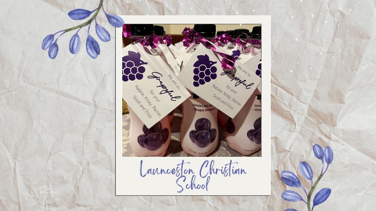 Each year the teaching team at Launceston Christian School give their aides a “punny” gift to let them know they are appreciated. This year’s gift was a grape flavoured drink with “We are so grapeful for you” written on the tag. Great work, Launceston Christian School. Can't wait to see what you come up with next year! :)