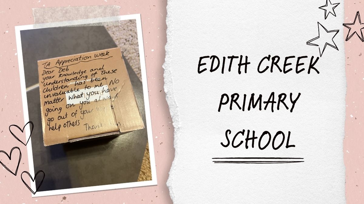 The teacher aides at Edith Creek Primary School, North West TAS, were celebrated with a delightful morning tea, flowers, and thoughtful gifts from the principal and teachers, accompanied by a heartfelt message of thanks. The teacher aides are appreciated and valued as integral members of the school community. They are actively included in students' wellbeing and learning goals, making the experience of supporting and nurturing young learners a truly rewarding experience. The school also encourages and supports the TAs in their own professional development and wellbeing.