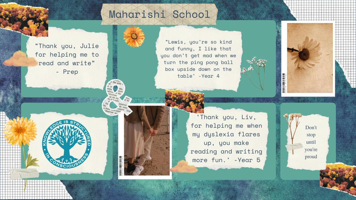 Maharishi School, VIC, has less than 60 students, and the significance of their teacher aides shines brightly. The school has seven teacher aides who wear many hats with skill. In such a small setting, their roles are diverse. They assist in classrooms, support teachers during yard duty, manage the library, set up resources, and even lend a hand in the school office. Their versatility and talent enhance the educational experience for every student. In honour of Teacher Aide Appreciation Week, the school decided to spotlight these amazing aides and, in the lead-up, a series of heartfelt messages were captured from students expressing their gratitude.
