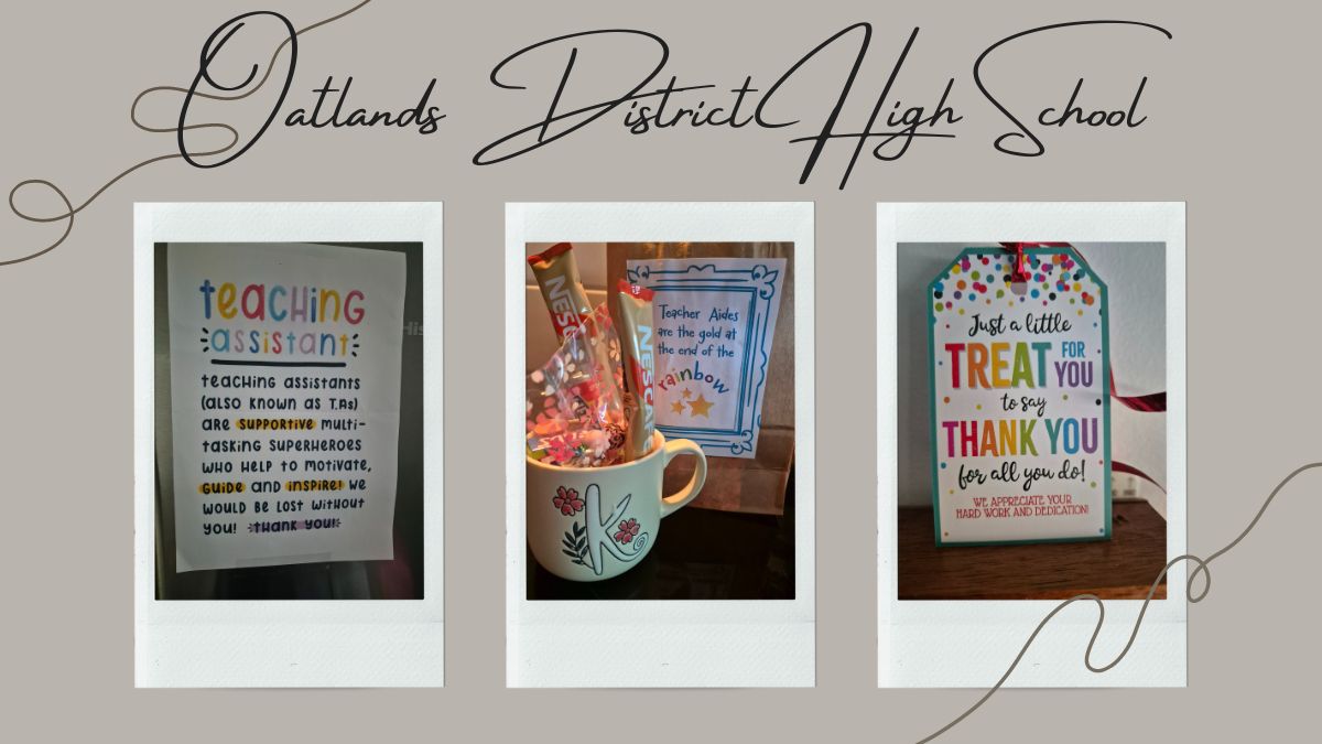 Oatlands District High School, TAS, showed appreciation for the teaching assistants from both the senior and the primary side of the school by hosting not one, but two morning teas – one for each group of TAs. Every single teacher assistant was also given a personalised mug and gifts as well as messages of thanks from the students and wider school community.
