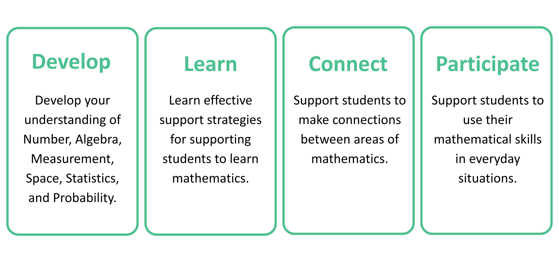 Develop the practical skills and knowledge needed to support students with learning Mathematics.