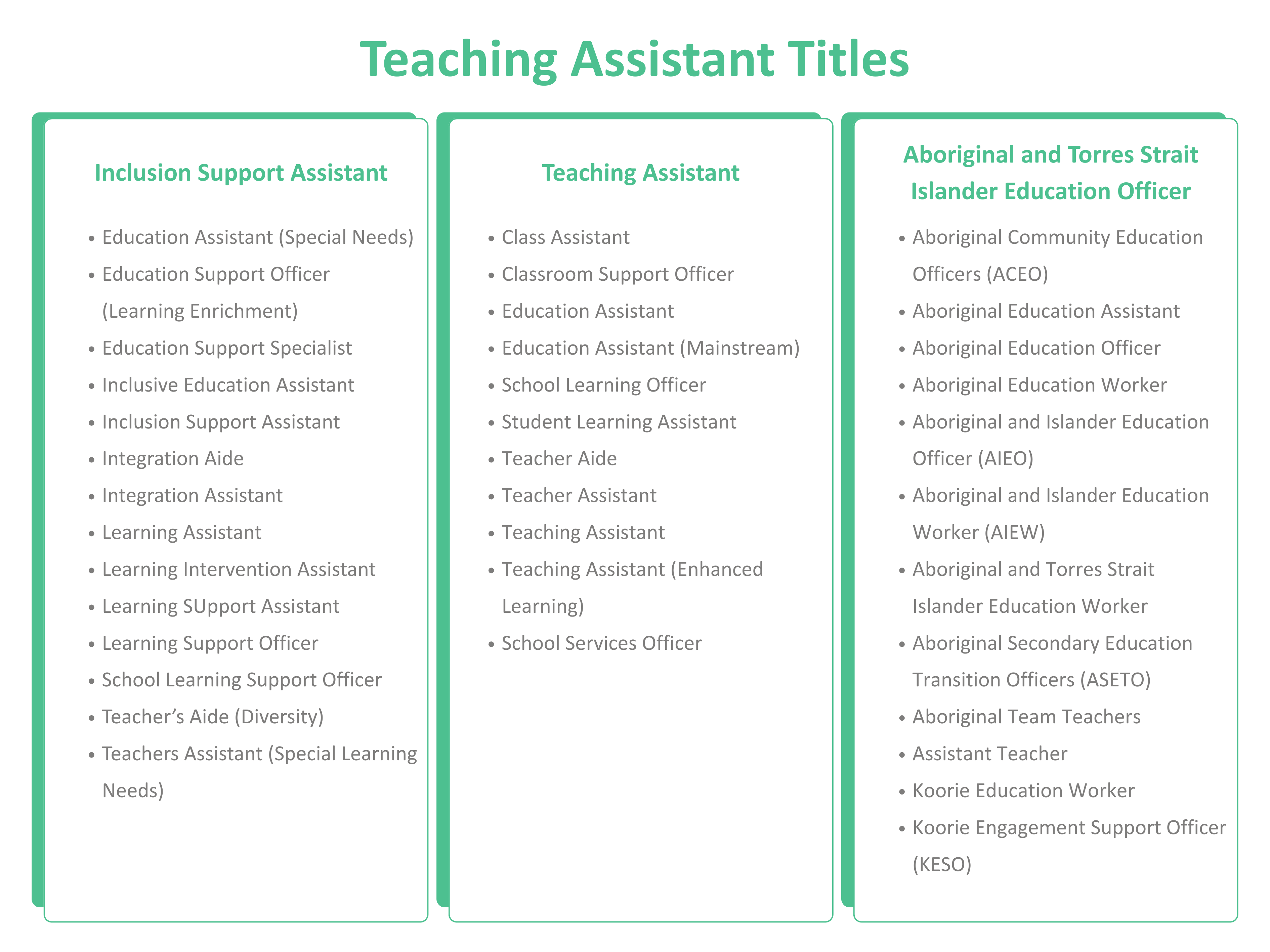Titles as listed by the Guidelines for Optimal Deployment of Teaching Assistants in Australian Classrooms (2025)